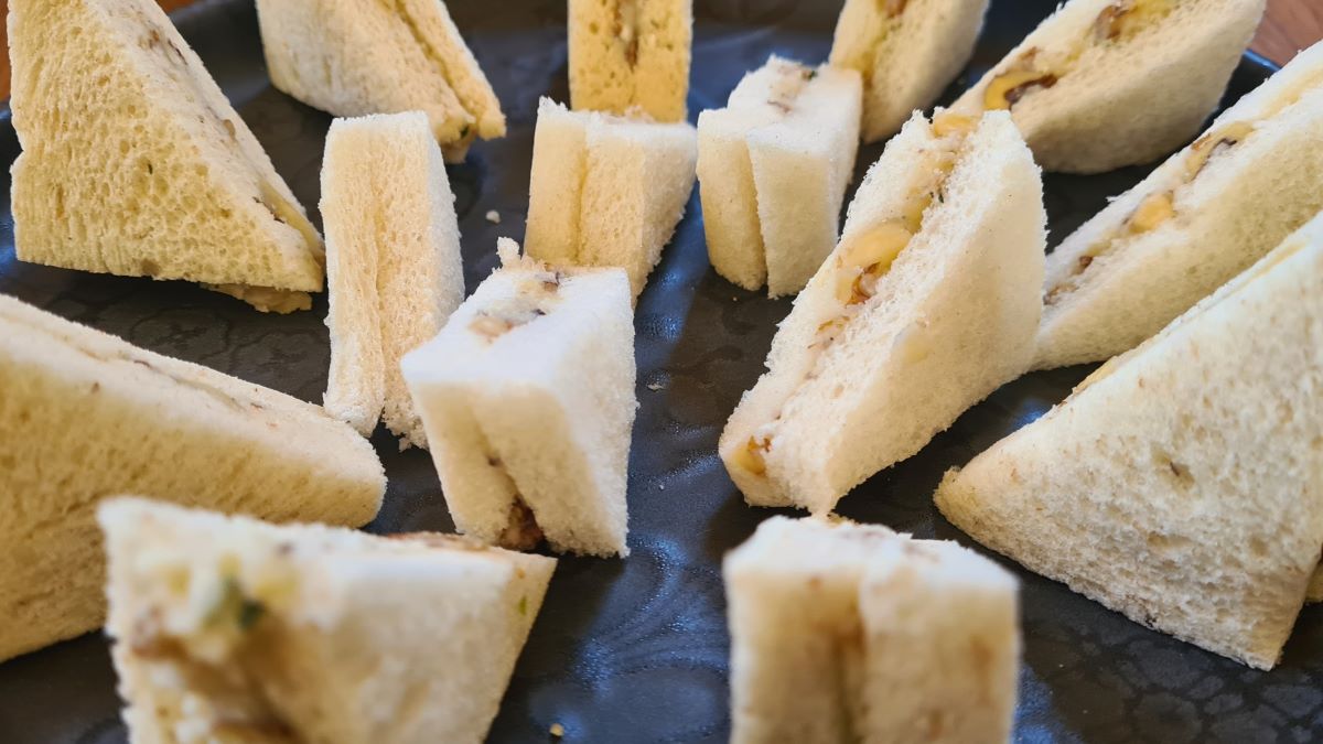 Die Walnüsse zuerst zerkleinern und anschließend in einer beschichteten Pfanne ohne Fett etwas anrösten. Die weiche Butter mit einer Gabel mit dem Stück Gorgonzola vermengen und dann die Nüsse daruntermischen, mit einer Prise Salz und eventuell mit Worcestersauce abschmecken. Eine Tramezzinischeibe mit der Käsemischung bestreichen und die kleinen Thymianblättchen darauf streuen, dann mit der zweiten Scheibe abdecken und gut andrücken. Mit einem scharfen Messer das Brot vierteln und die kleinen Quadrate quer halbieren, sodass kleine Dreiecke als Mini-Tramezzini entstehen. So hat man in wenigen Minuten einen kleinen köstlichen Genuss zum Aperitif hergestellt.