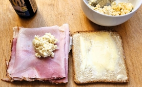Am Wichtigsten sind Zutaten, die einem selbst gut schmecken, um für sich selbst den besten Croque Monsieur zu machen. Der Lieblingsschinken und der Lieblingshartkäse spielen dabei eine wichtige Rolle, aber auch das Toastbrot darf man nicht unterschätzen. Wir favorisieren guten Bein- oder Ofenschinken, nicht zu dick geschnitten, also nicht von Hand, sondern von der Maschine. Gruyère oder ein sehr guter reifer Bergkäse aus Vorarlberg sind die Käse unserer Wahl, eventuell noch mit einer kleinen Portion Parmesan vermischt. Als Toastbrot bevorzugen wir natürlich selbstgemachtes wie dieses: Aromatisches Toastbrot. Das A und O ist, dass das Innere des Croques gut warm, aber nicht brennheiß ist, und eine cremige Schicht aufweist, sowie außen, vor allem an der Oberseite und an den Rändern, knusprig ist. Er muss umami schmecken, und wir helfen da noch ein bisschen nach.