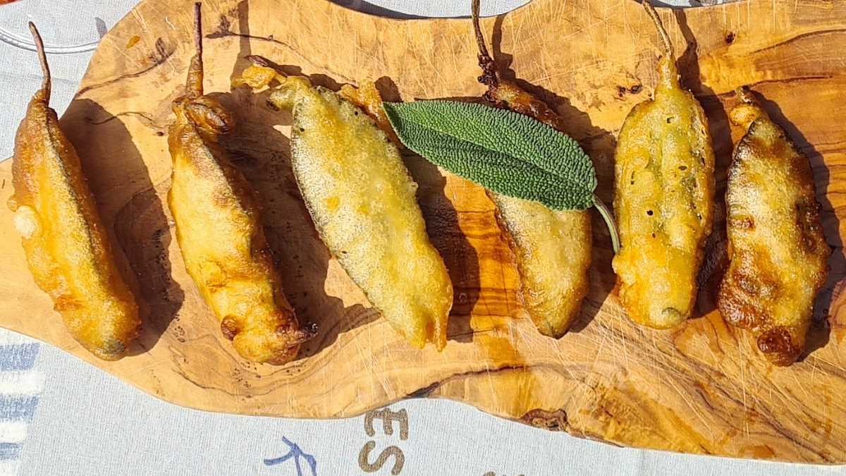 Wir verbringen gerade Ostern in Muggia, und hier in Italien wächst schon emsig der Salbei. Bald, hoffen wir, auch in Österreich. Wir freuen uns auf die frischen jungen Blätter, und wenn diese groß wachsen, das heißt wenn die Blätter eine Länge von 7 bis 9 Zentimeter (ohne Stiel) erreichen, eignen sie sich für wunderbare Aperitif-Häppchen: frittierte Salbeiblätter.