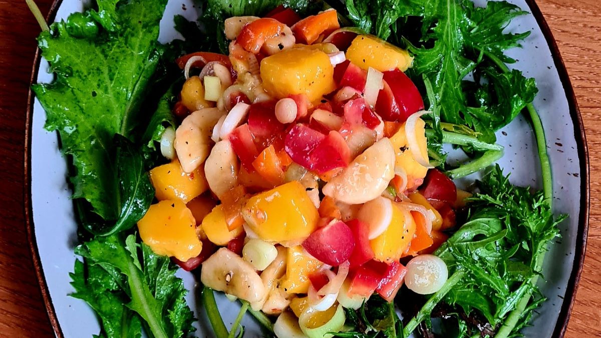 Entstanden ist ein erfrischender und leuchtender Spätsommersalat!