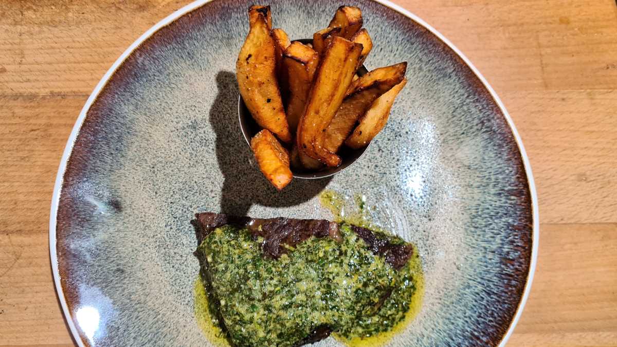Zum Glück hält die Butter „Café de Paris“ im Kühlschrank ein paar Tage, kann also im Voraus gemacht werden, und ist vielfältig einsetzbar: Nicht nur ein Zwischenrippensteak, ein Entrecôte, ist dazu herrlich, auch eine Geflügelbrust passt gut dazu, gegrillte Mies- oder Jakobsmuscheln sind mit einer leicht abgewandelten Butter „Café de Paris“ ebenfalls köstlich. Jetzt jedoch mit einem perfekten Steak: