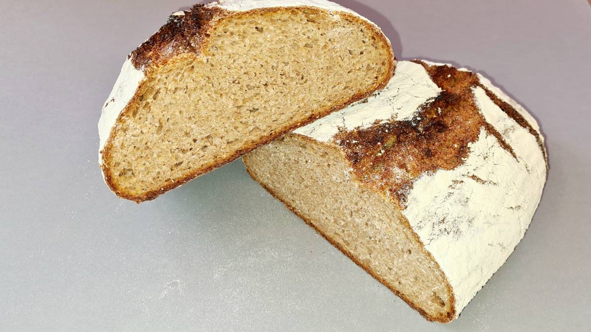 Den Ofen rechtzeitig auf 230°C Ober-/Unterhitze vorheizen. Den Teigling auf das Blech setzen und in den Backofen mit Schwaden einschießen. Nach 15 Minuten Temperatur auf 210° C reduzieren und rund 30 Minuten fertig backen (Klopfprobe). Auf einem Gitterrost abkühlen lassen.